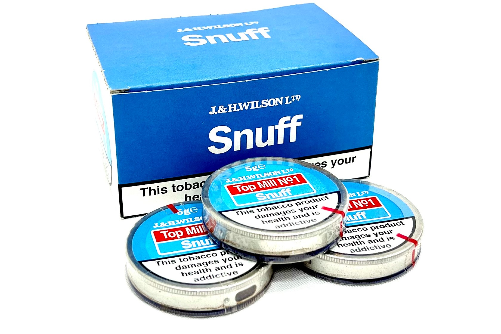 J & H Top Mill No.1 Snuff Box of 12 contains twelve individual 5g tins of traditionally milled snuff, presented in a fine, dry texture with a clean and distinctive character that reflects long-established English snuff-making heritage. In contrast, the compact tins offer a practical and consistent format that maintains the product’s familiar profile and measured presentation without unnecessary embellishment.